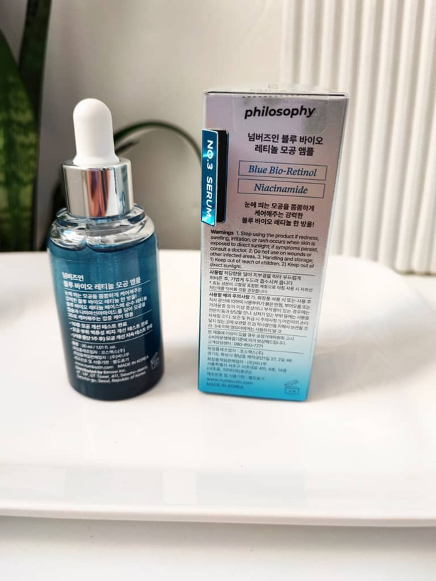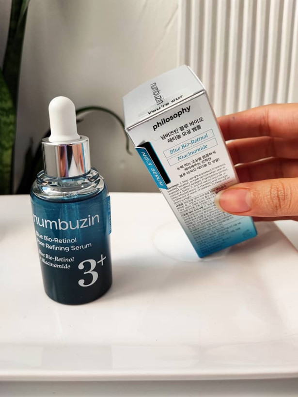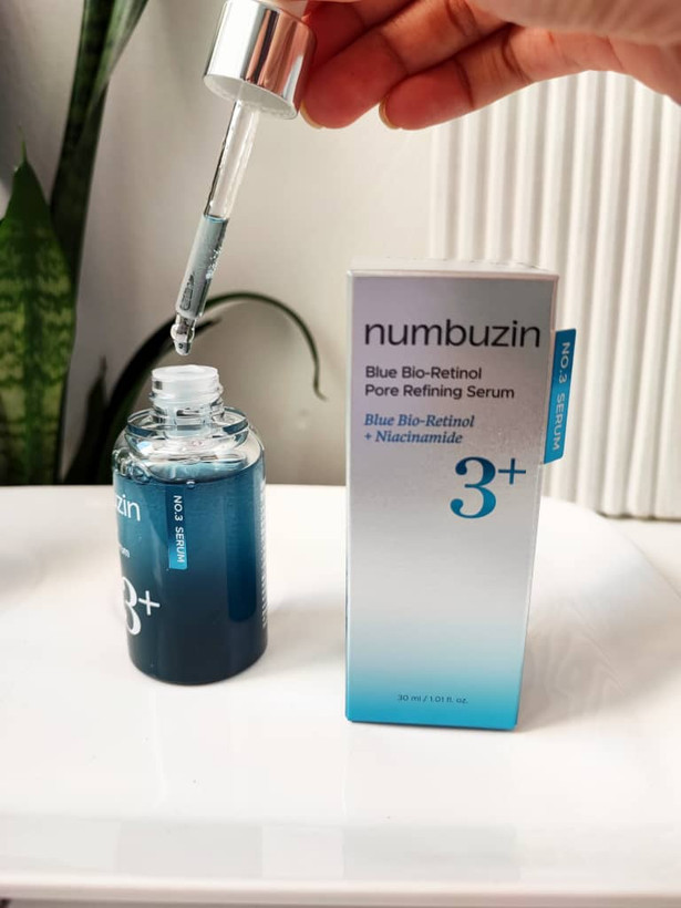 سرم کنترل منافذ بایو رتینول آبی و نیاسینامید شماره 3 نامبوزین (Numbuzin No.3 Blue Bio-Retinol Pore Refining Ampoule) یک سرم سهکاره است که به صورت همزمان: